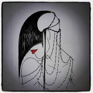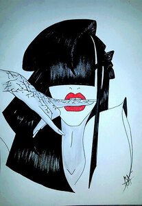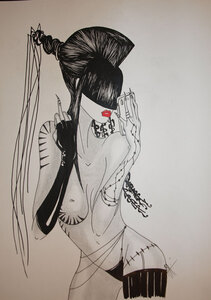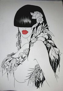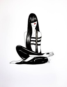 Encadrement noir et passe-partout noir biais blanc ( 40/50cm) conseillé.